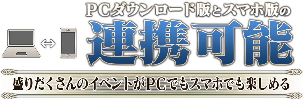 PC版では、既にスマートフォン版(iOS/Android)をご利用中の方も、データ連携をすることで同じプレイデータで遊ぶことができます。